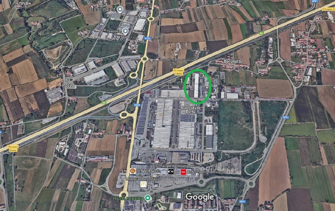 Capannone in Vendita a Chivasso, situato nella zona industriale chiamata Consorzio Picchi, con una superficie totale di circa mq.10.000.