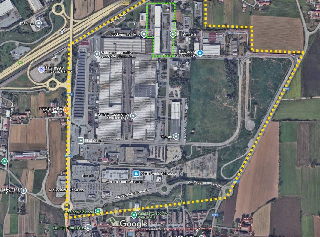 L'immobile dispone di ben 6 ingressi carrai, dotato di diversi carroponti, e di un ampio piazzale di circa mq. 17.000.