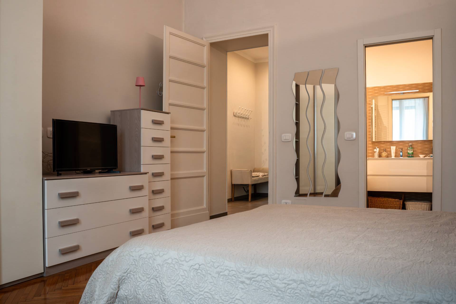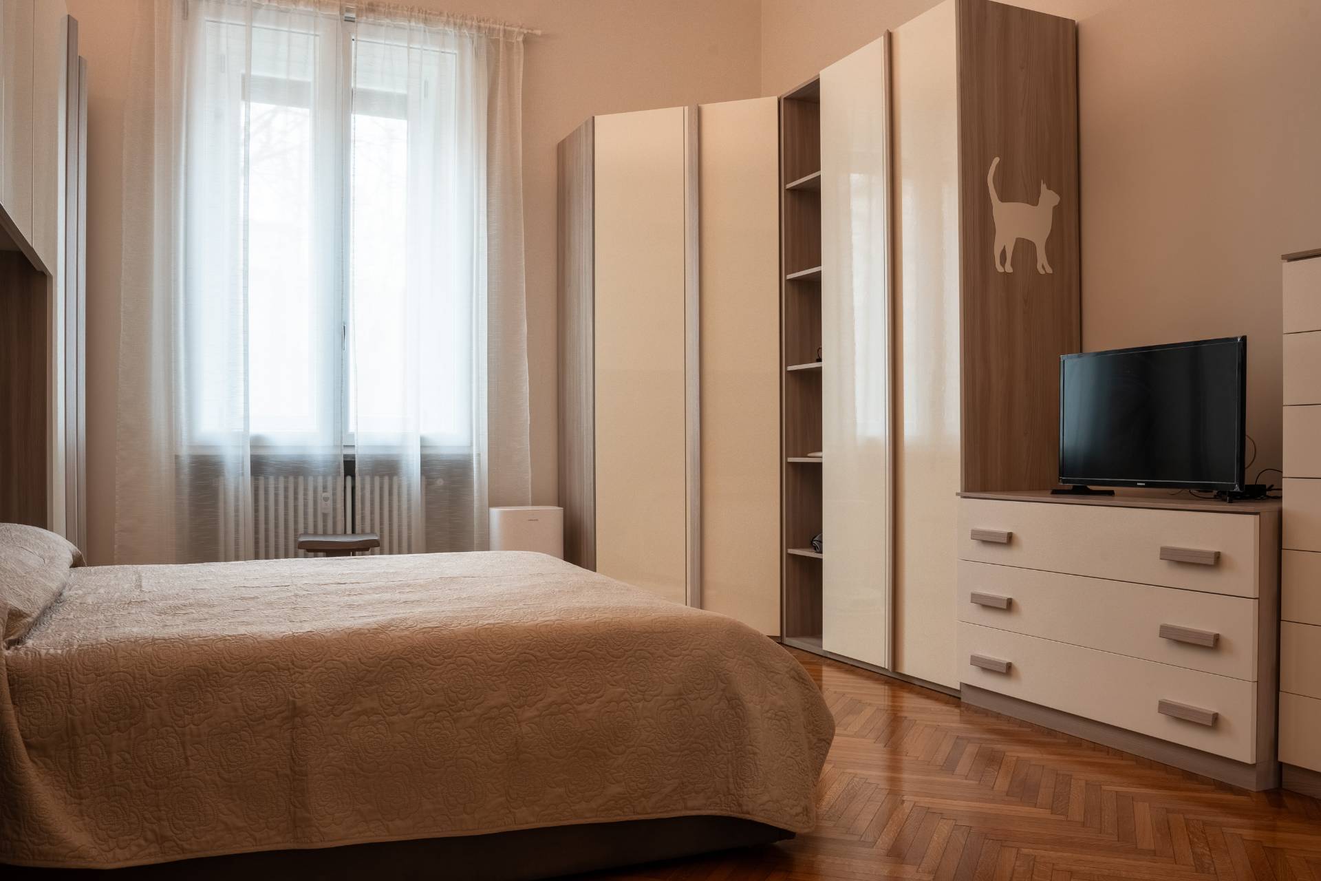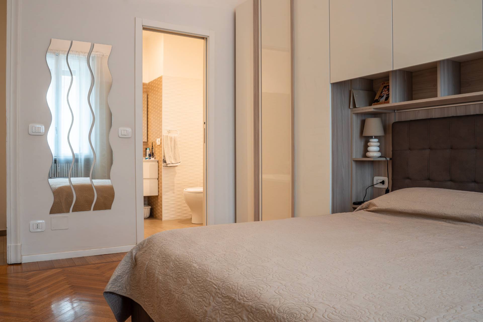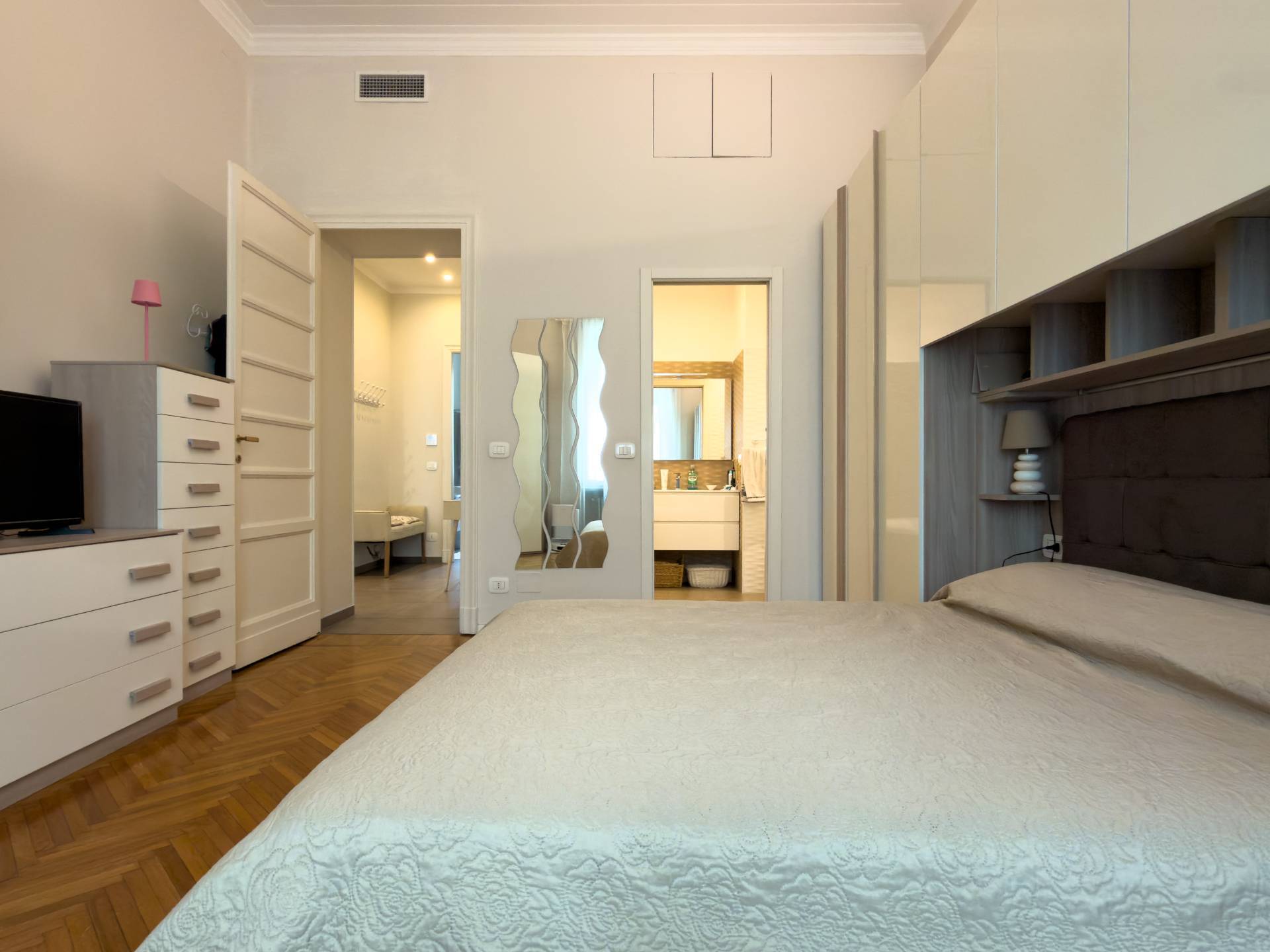 Proponiamo in locazione in curato stabile anni'30 con servizio di ascensore un ampio trilocale di circa 80 mq finemente ristrutturato e completamente arredato sito al piano rialzato. L'unità è così composta: ingresso, soggiorno, cucina attrezzata, ampia camera da letto con cabina armadio e doppi servizi.