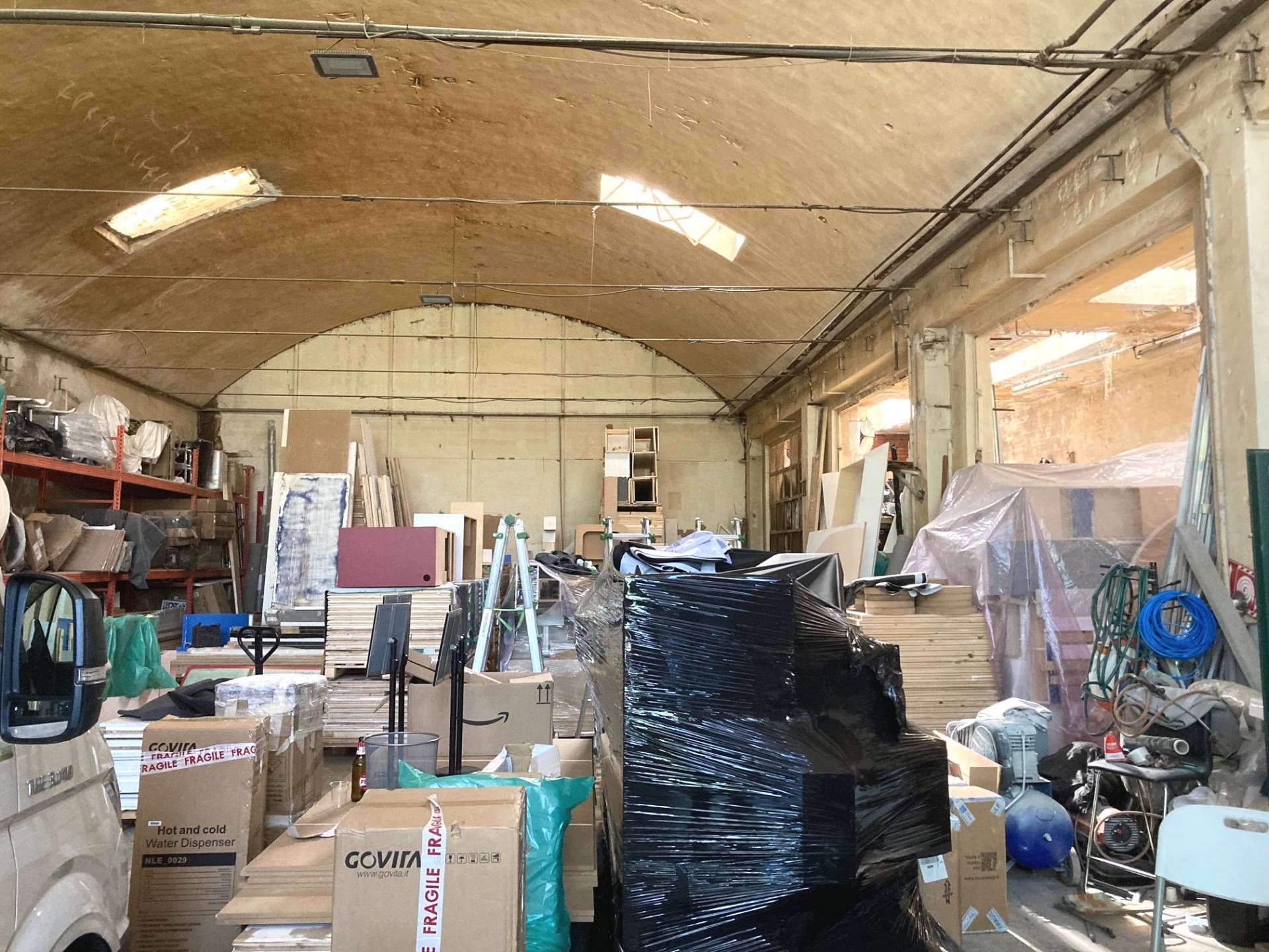 Facilità di accesso per veicoli e mezzi di carico/scarico, ampi portoni carrai; altezza sottotrave mt. 3,50 altezza colmo mt. 6,70 (tetto a botte).