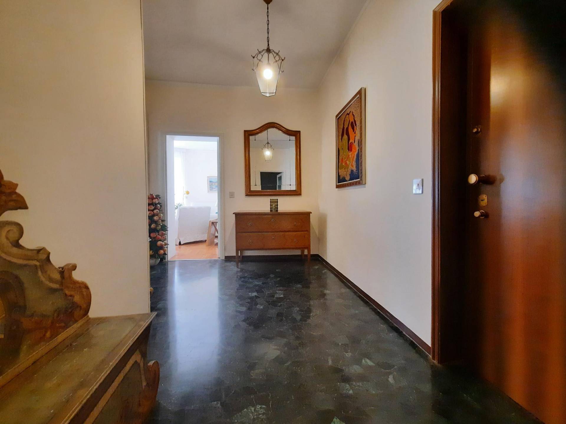 Nel cuore di Rapallo, in Via della Libertà 34, a pochi isolati dal Lungomare Vittorio Veneto e da tutti i servizi, proponiamo un Appartamento di ampia metratura posto al primo piano di un elegante Palazzo Residenziale rivestito in paramano e marmo travertino.
