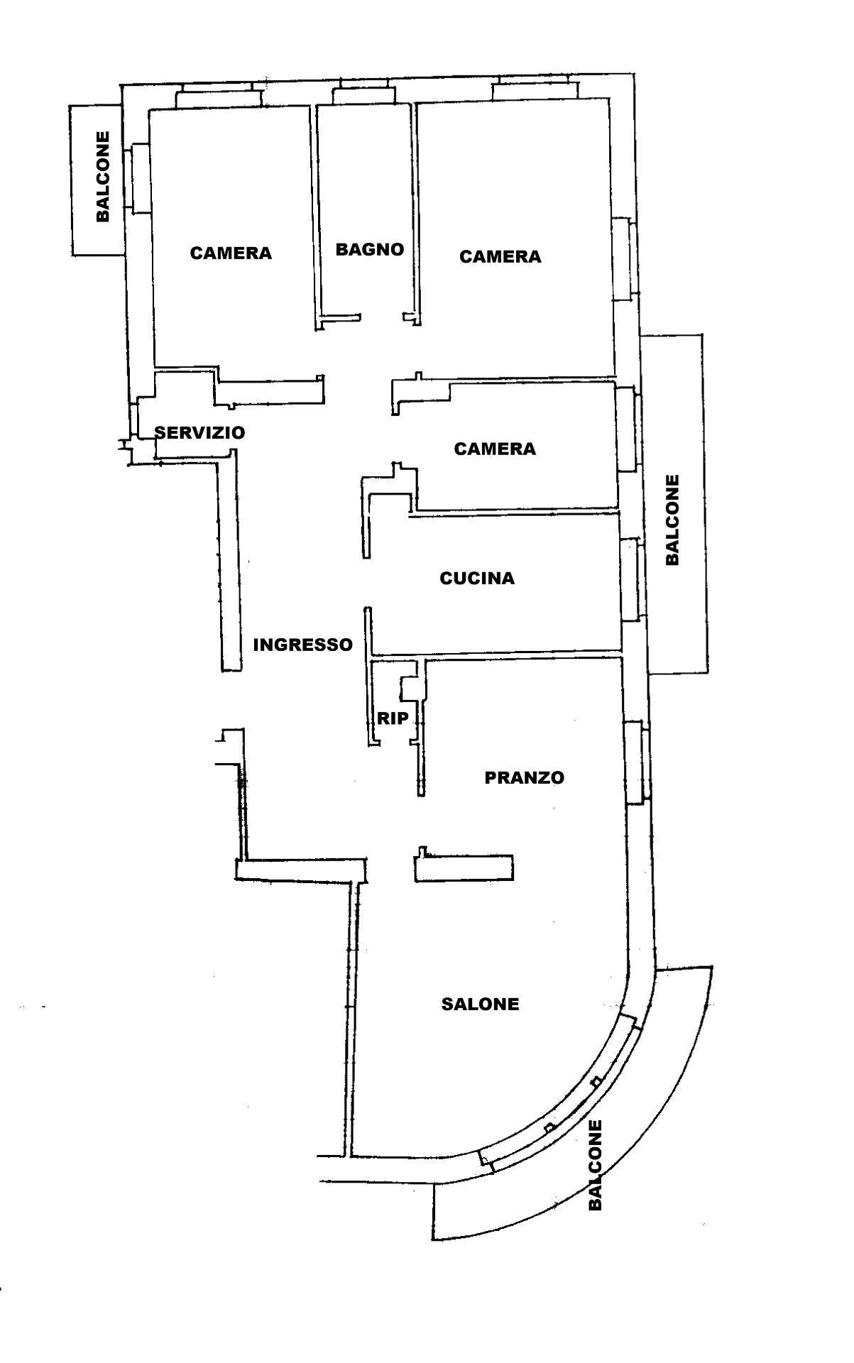 L'Appartamento suddiviso in 7 vani per 148 mq., è composto da un ampio ingresso, un salone angolare con balcone vista mare, sala da pranzo, cucina, 3 camere da letto, bagno, un servizio, altri 2 balconi e una grande cantina.