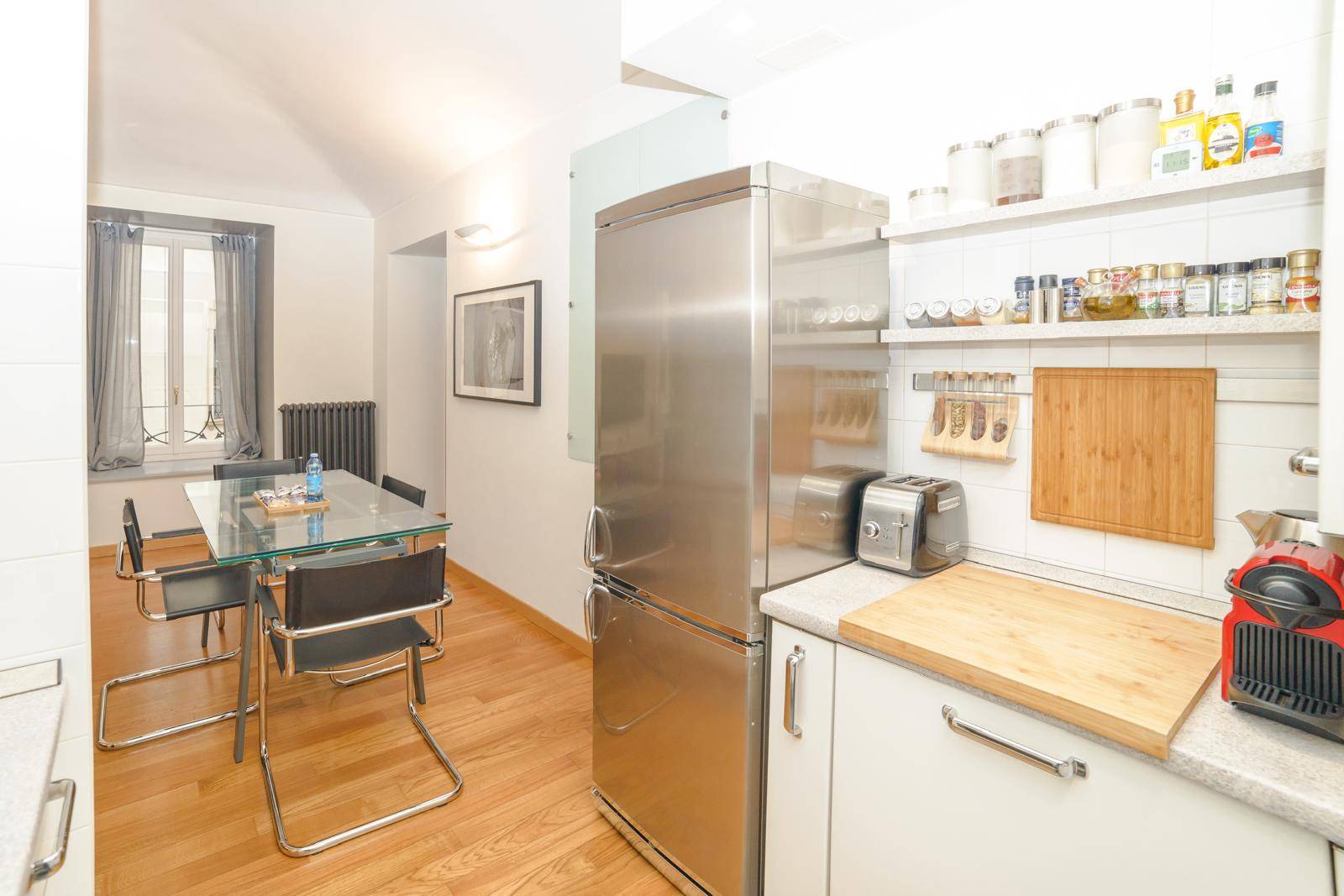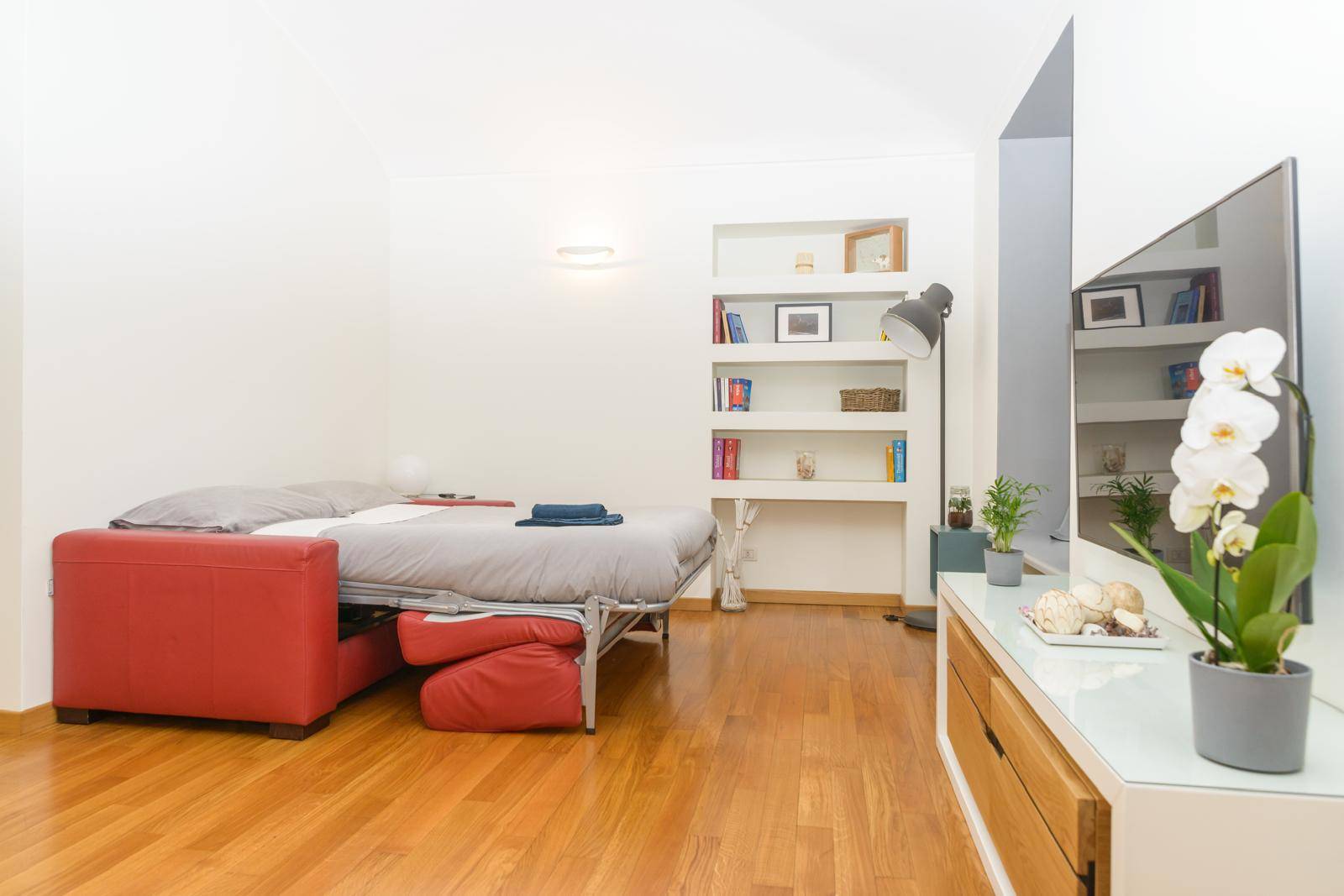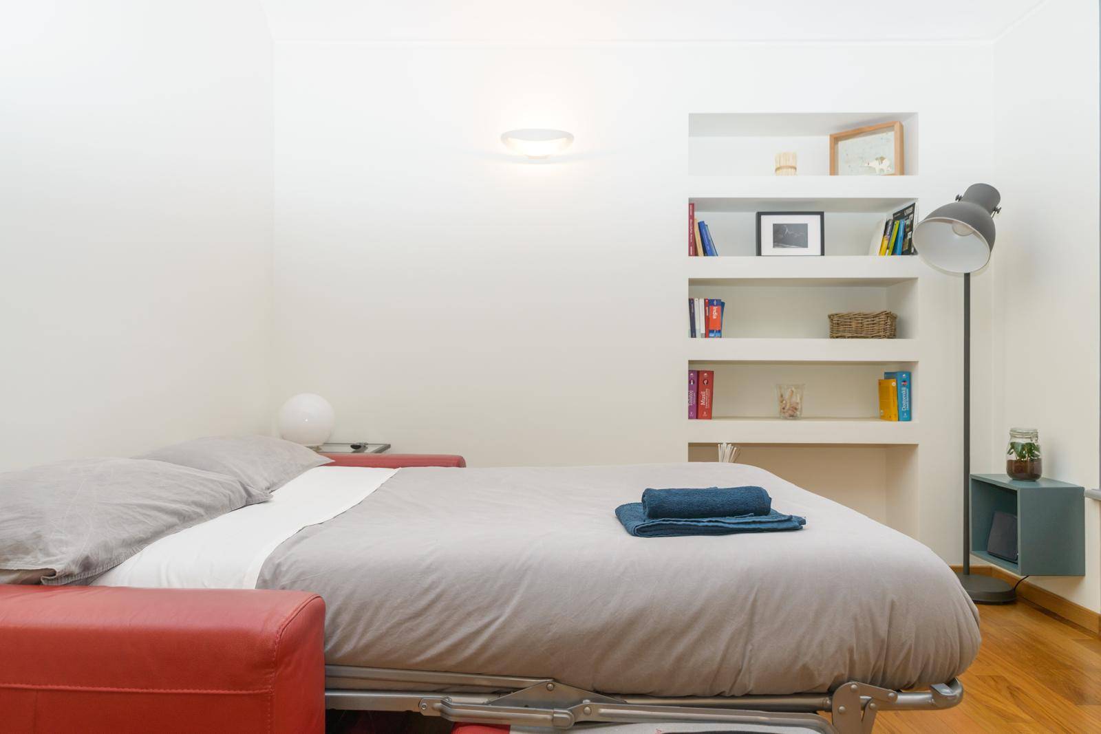 Proponiamo in Vendita in curato palazzo di fine'700, completamente ristrutturato nel 2005, un Appartamento ristrutturato di 70 mq. sito al piano primo con servizio di ascensore. Unità è composta da ingresso living su soggiorno con cucina a vista, ampia camera da letto, bagno cieco ed una cantina pertinenziale al piano interrato. Lo stato di conservazione interno risulta essere ottimo per quanto concerne pavimentazioni, rivestimenti ed impianti, un valore aggiunto è costituito dalla presenza di serramenti in legno con vetro camera doppio. Il riscaldamento è autonomo a gas metano e le spese di condominio ammontano ad euro 900/00 annui ca. L'Appartamento è disposto su un' aria sola ma risulta luminoso con affaccio sulla chiesa di Via Giulio. L'Appartamento è ubicato nel rinomato "Quadrilatero Romano", quartiere con caratteristiche residenziali signorili, in posizione molto comoda al centro della città, ai vari tipi di servizi, nonché ai mezzi pubblici di trasporto (bus, stazioni ferroviarie, metro e collegamenti autostradali).