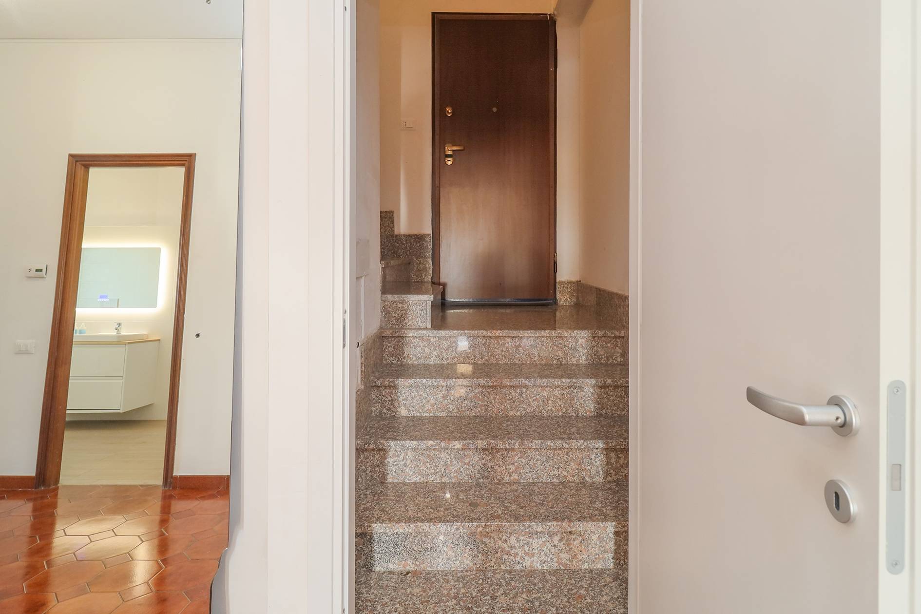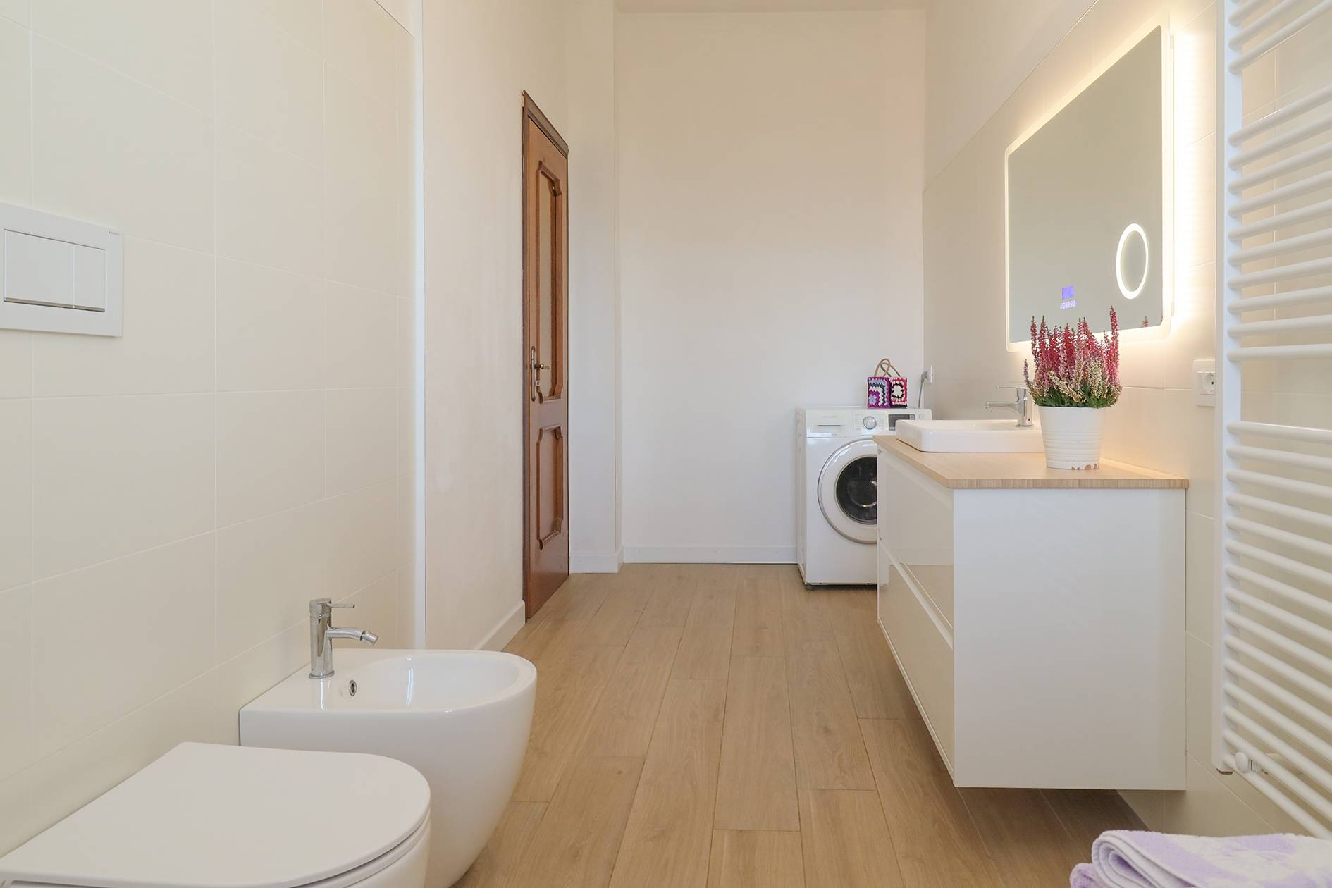 L'appartamento è estremamente versatile, adatto a famiglie numerose o a chi necessita di grandi spazi con accessi indipendenti e si presta facilmente ad un eventuale frazionamento (sono già presenti gli attacchi cucina e caldaia indipendente al piano superiore).